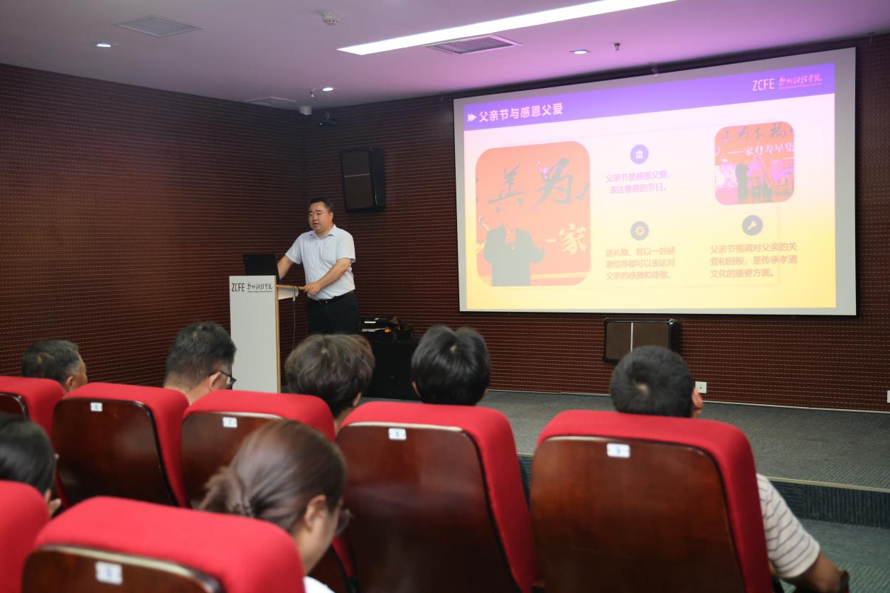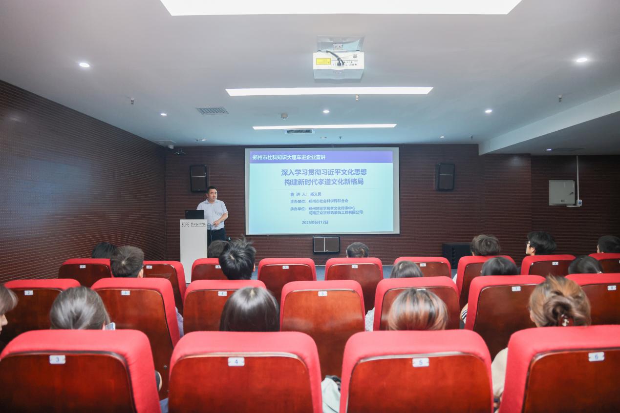 为做好社科普及宣讲工作,持续开展习近平新时代中国特色社会主义思想和党的二十大精神的进基层宣讲活动,贯彻落实全国、省、市宣传思想文化工作会议精神,6月12日上午,由郑州市社会科学界联合会主办,2138cn太阳集团孝文化传承中心与河南正众贤建筑装饰工程有限公司联合承办“深入学习贯彻习近平文化思想 构建新时代孝道文化新格局”为主题的宣讲活动,在承办企业举办。校党委宣传部部长杨建伟、机关二党总支书记时健、校地合作处处长陈明灿、河南正众贤建筑装饰有限公司总经理徐志春及公司20余名职工参加宣讲活动,活动由徐志春主持。
