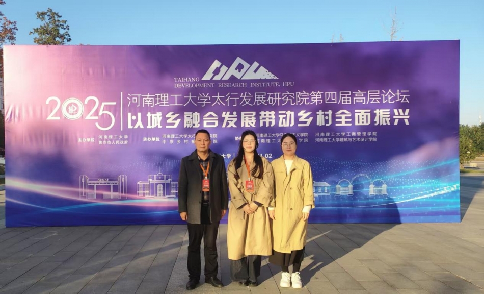 2025年11月1日上午,由焦作市人民政府、河南理工大学共同主办,河南理工大学太行发展研究院、中原乡村振兴学院共同承办的河南理工大学第四届“以城乡融合发展带动乡村全面振兴”高层论坛在河南理工大学南校区第二图书馆学术报告厅举行。本次论坛汇聚了来自政府、高校、研究机构的多位领导与知名专家学者,共同探讨城乡融合与乡村振兴大计。我校校地合作处处长陈明灿教授和郑州市城乡发展研究中心研究员杨一心和宋冠杰三位教师参会。